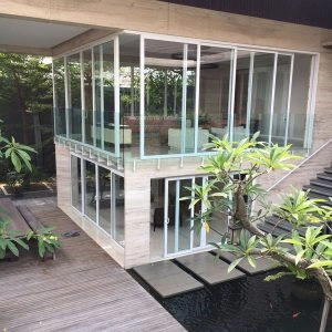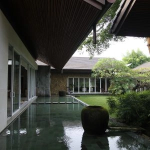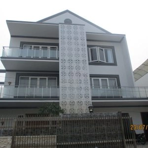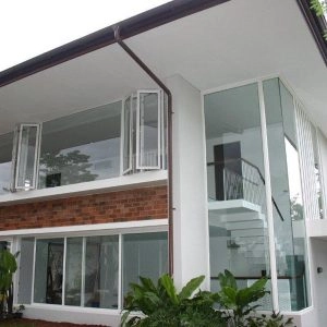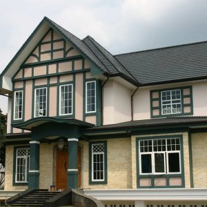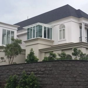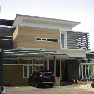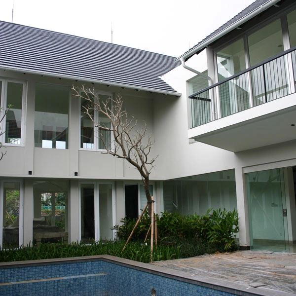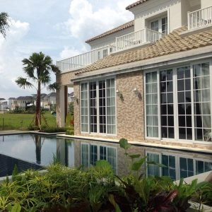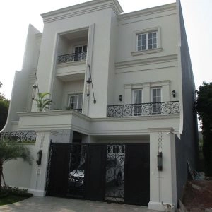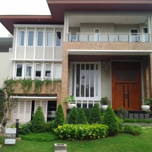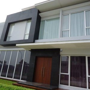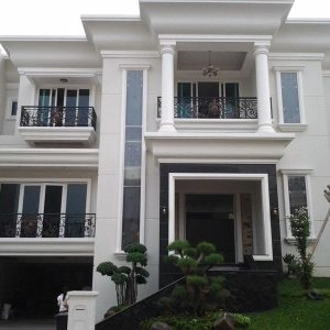Rumah bergaya Amerika klasik modern yang di dominasi pintu pintu sliding di lantai 1 dan setiap balkon lantai 2 untuk memberi kesan ruang yang lapang. Dan beberapa jendela model casement melengkapi design rumah ini. Dengan penambahan georgian bars pada setiap pintu dan jendelanya semakin memberi kesan klasik pada rumah ini.